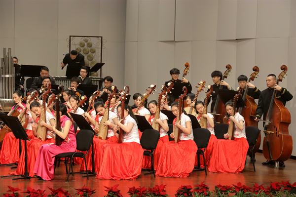 2019踏着欢歌声走来,由浙江省委宣传部、浙江省文化和旅游厅主办的2019浙江省属文艺院团新年演出季,1月8日晚在浙江音乐厅上演了2019新春民族管弦乐音乐会。音乐会由浙江艺术职业学院承办,国乐新觞,华音今咏,感染了现场观众。这是浙江艺术职业学院继10月张凌琵琶独奏音乐会、11月吴樟华竹笛独奏音乐会后,再一次在浙江音乐厅奏响国乐之音。