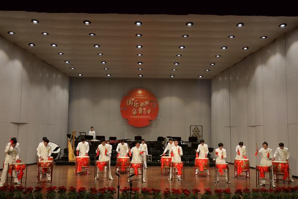 打击乐合奏《黄河船夫》是整场音乐会最具震撼力的节目,此曲采用民族打击乐合奏的形式,展现出船夫们的豪迈气概。担任打击乐领奏的是青年教师陈利宏,在他的引领下,20余位演员用精湛的技艺和极富表现力的肢体动作征服了台下观众,现场响起热烈掌声。