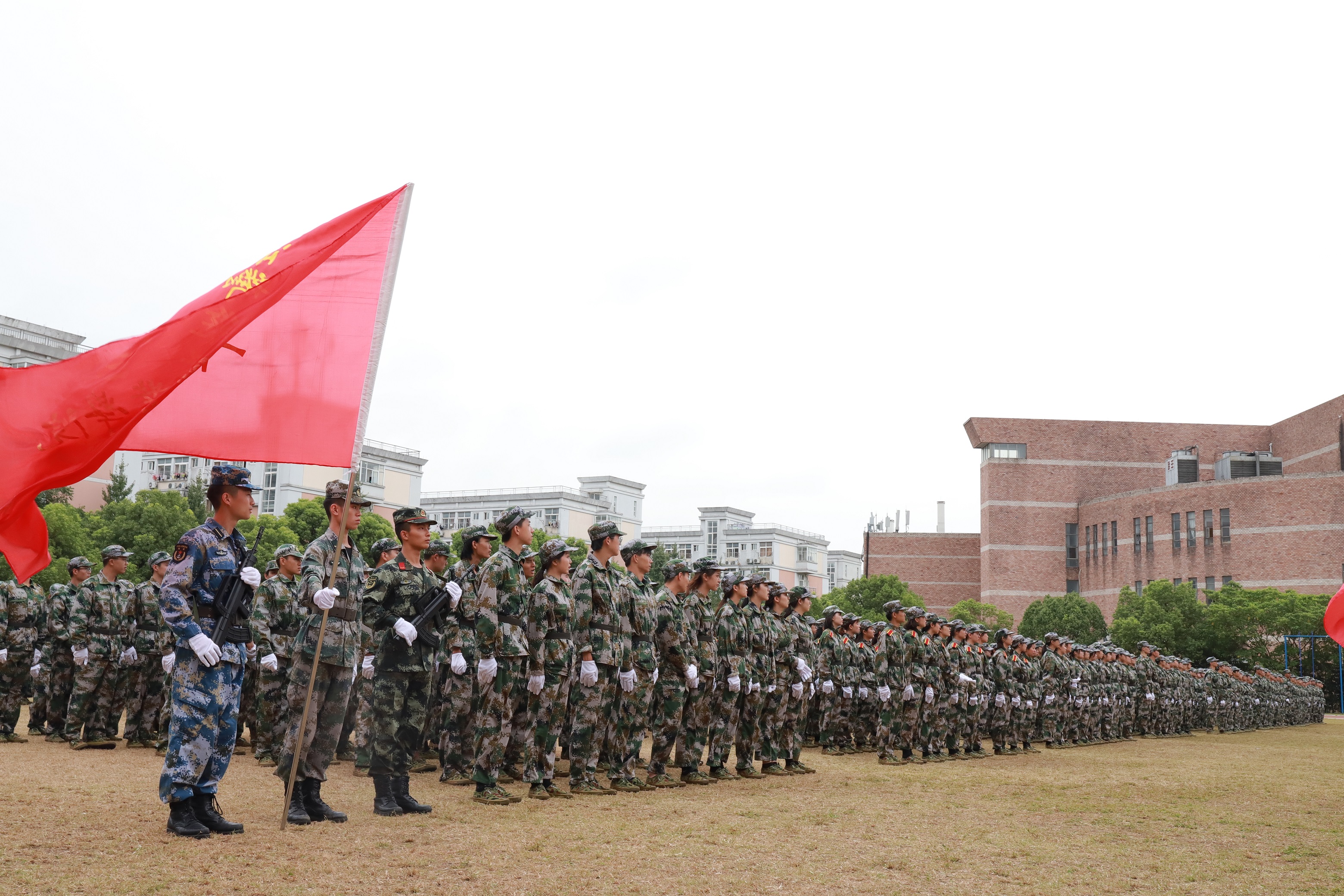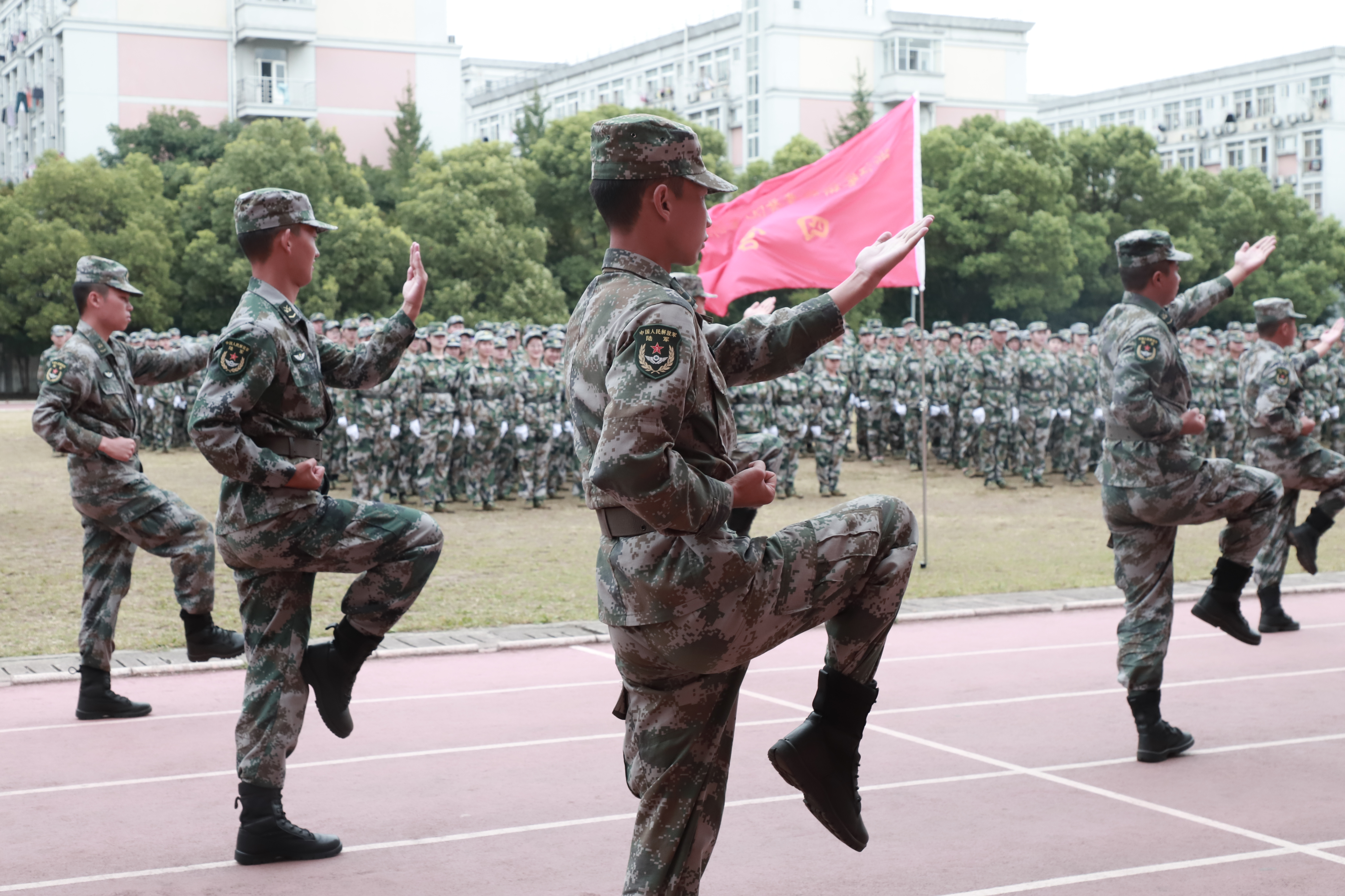 各营连新生进行会操表演,经过13天刻苦训练,他们步伐整齐,精神抖擞,目光炯炯有神,展现了浙艺学子的青春风采和精神风貌。