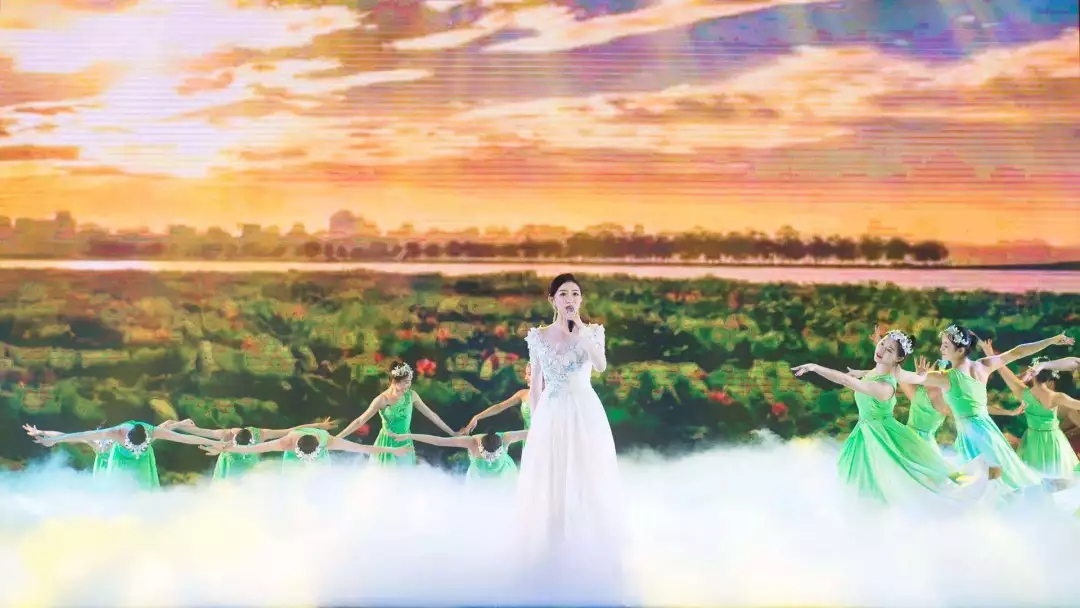 音乐系“锦上花”女团应邀在评选大会上表演了女声小组唱《洪湖岸边是我家》节目,赢得现场观众阵阵喝彩。