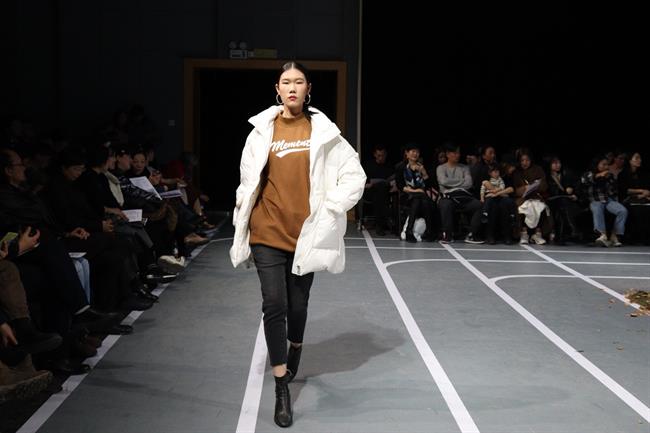 音乐转换,服装的风格也变暖了。毛衣、风衣、棉衣……棕色的冬日暖衣取代了先前的严肃,绒绒的冬款让清冷的模特也多了一份温情。与场地内银杏叶相互映衬,他们就是在5号楼中心花园的小径上,在银杏叶的陪伴中完成了一次次汇报演出。大屏幕上的VCR也记录了他们浙艺时光,从课堂上的每一次疲惫练习到奔赴各地秀场绽放属于自己的美,时光流逝,他们在成长。