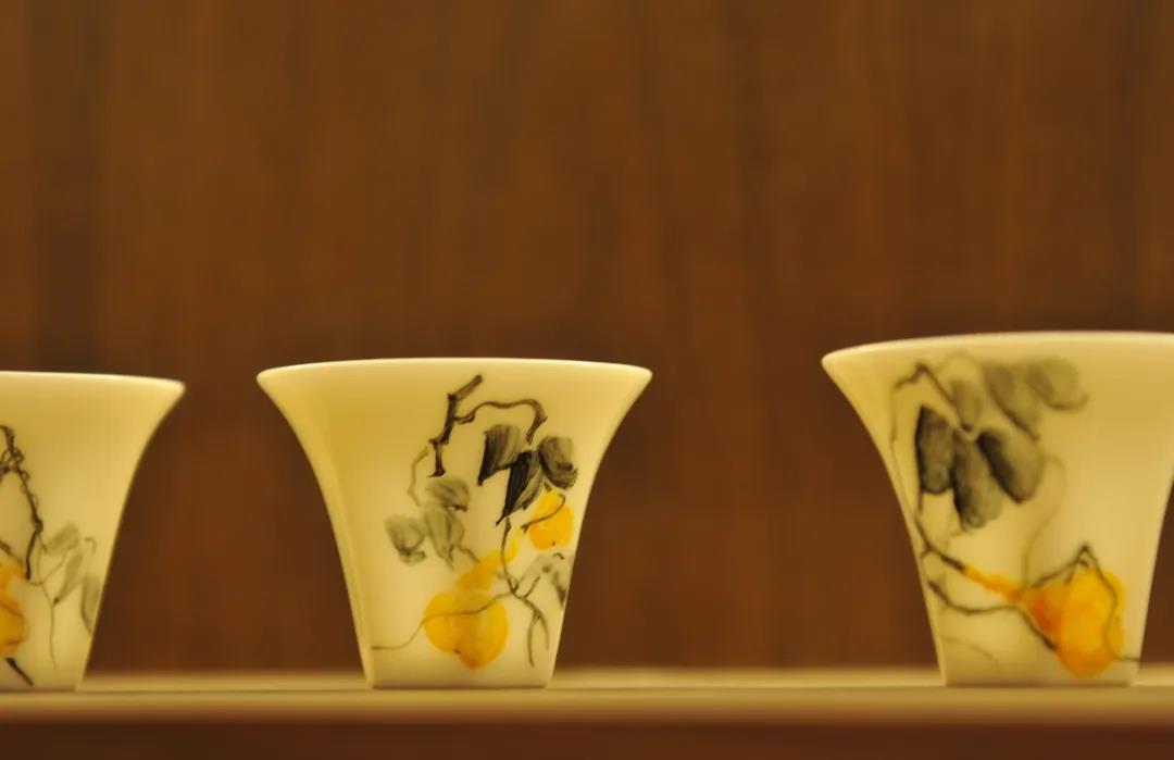 在樟脑油乳香油的调和下,釉料便形成了。用精细的勾线笔在瓷器上作画更能体现同学们的高超技术,“福禄寿”主题中的葫芦、鹤、八宝纹样等都展示了他们认真的态度和纯熟的技艺。
