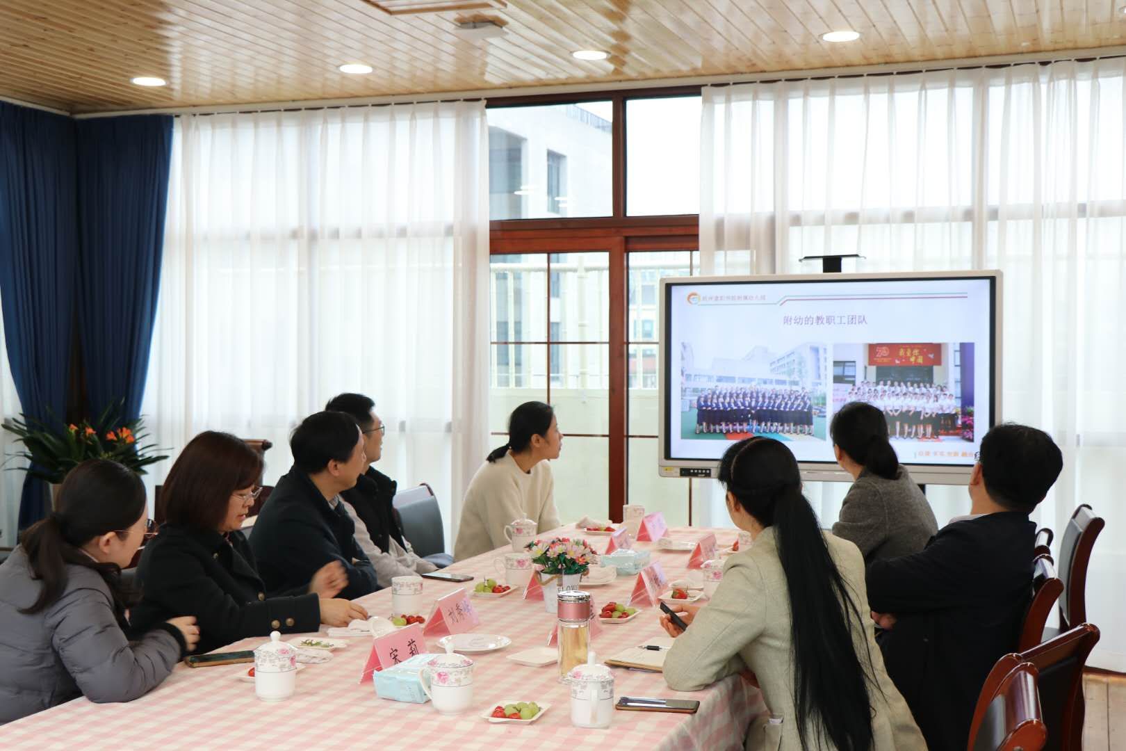 随后,考察团参观了富阳学院学前教育专业实训室(模拟幼儿园、电钢教室、舞蹈教室、琴房)、富阳学院附属幼儿园。