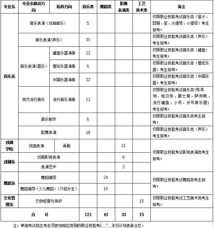 1.表演类综合成绩=职业技能考试成绩/3×0.7+文化考试成绩/3×0.3(戏曲表演、音乐表演(戏曲音乐)、音乐制作、歌舞表演除外);