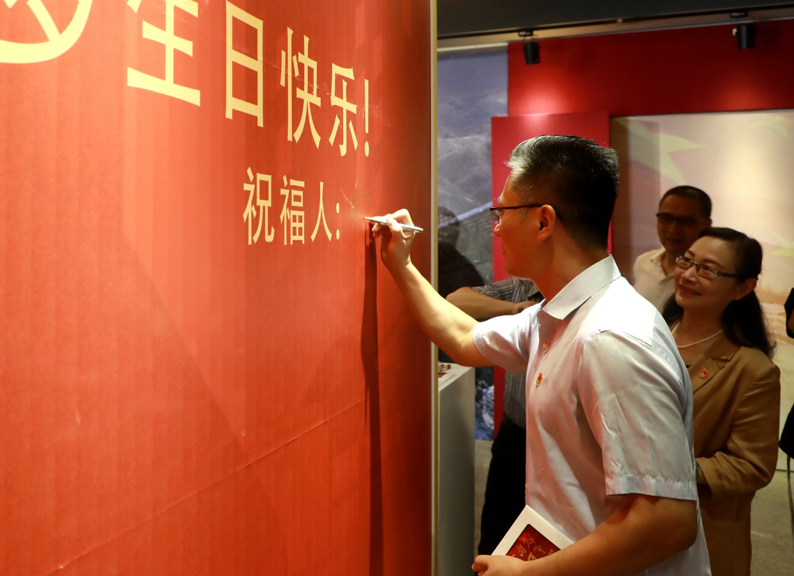 活动前期,学校开展百名师生党员“百人百言致敬百年”接力活动和书法作品致敬百年征集活动。美术系党总支下设的三个党支部和五个教研室结合专业特色,将党史学习教育融入专业教学,完成了前期的设计、创作、布展工作。