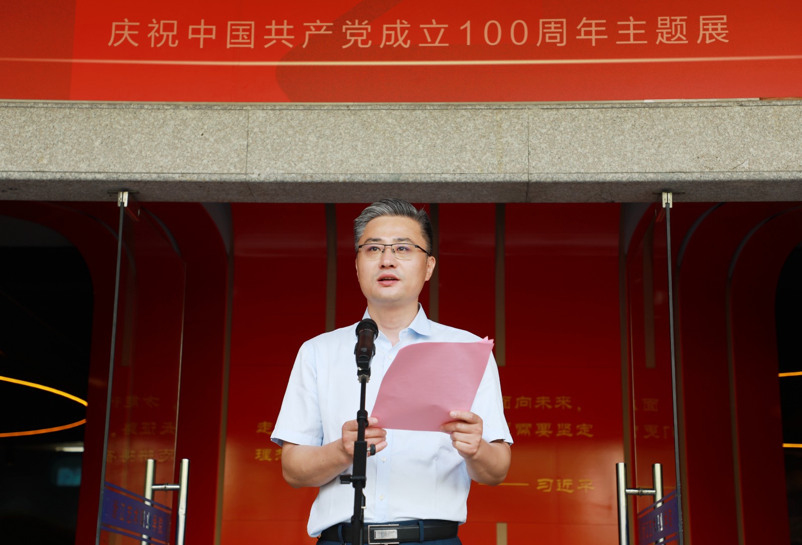“百年征程波澜壮阔,百年初心历久弥坚”。浙江艺术职业学院《艺心向党 礼赞百年——庆祝中国共产党成立100周年主题展》,于6月25日在学校四号楼一楼展厅开幕。校党委书记薛亮,党委副书记、院长黄杭娟,党委委员、副院长沈军甫、支涛出席,各职能部门负责人、各院系书记和美术系师生代表参加。开幕式由党委委员、宣传部部长马向东主持。