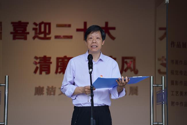 黄杭娟在致辞中表示,作为学校迎接党的二十大主题宣传教育系列活动之一,此次展览立足艺术特色,以多种作品形式呈现“守初心、知敬畏、扬正气、担使命”的廉洁主题,充分展示了学校紧紧围绕“立德树人”的根本任务,坚持营造风清气正的校园氛围,坚持培育师生敬廉崇洁、清正自律的价值观念。希望通过艺术的形式,引导广大党员、师生追求高尚的职业道德和个人情操,树立良好的校风学风,规范师德师风,营造涵养校园清廉文化,为持续提升清廉学校建设水平,推动学校“十四五”高质量发展和助力“双高”建设筑牢思想根基,做到德才并重。全校师生要将新时代廉洁文化内化于心、外化于行,牢固树立正确的世界观、价值观、事业观,明大德、守公德、严私德,以坚实的担当和优异成绩迎接党的二十大胜利召开。