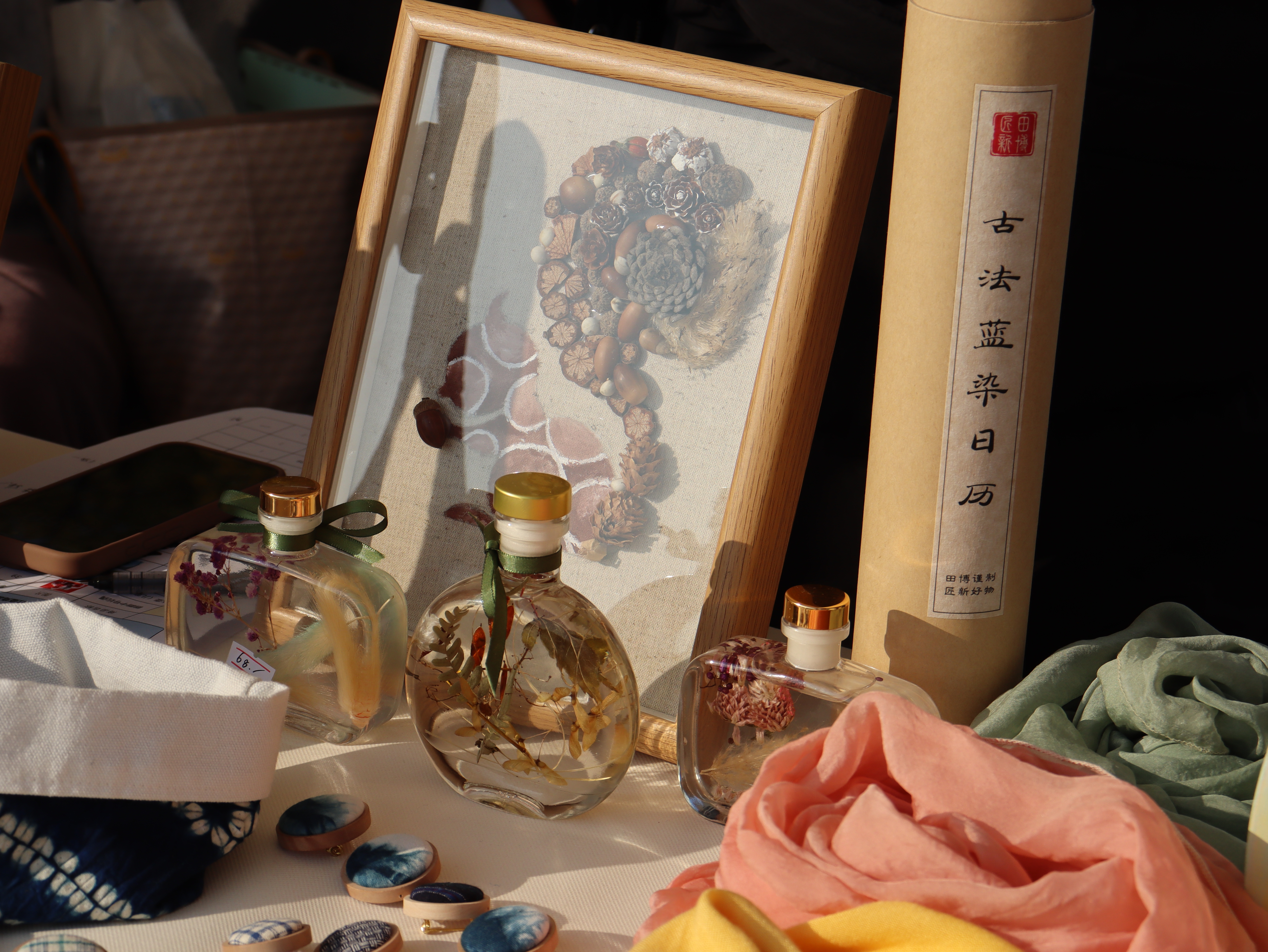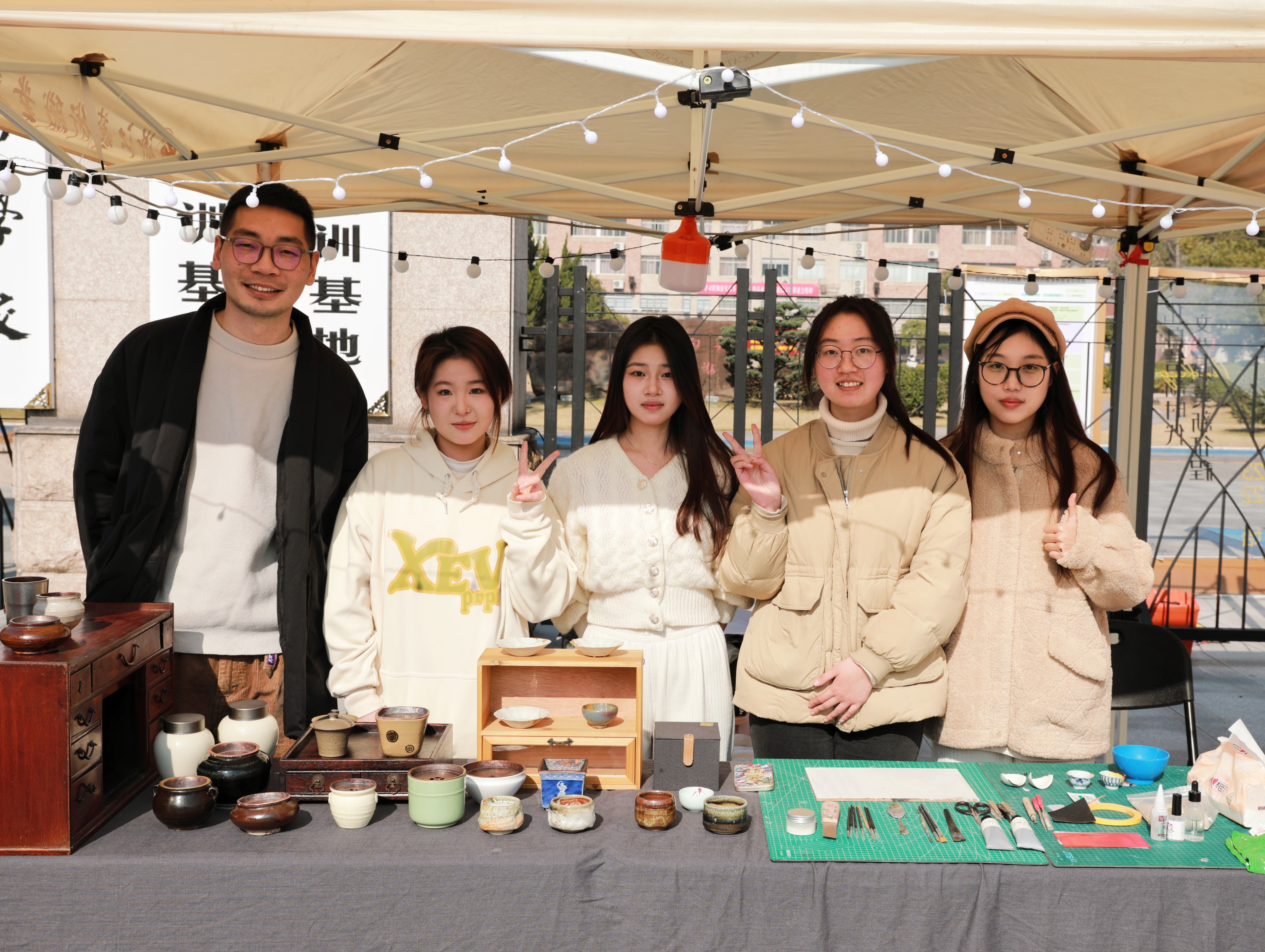 参加此次市集活动的师生结合课堂教学,精心打磨设计作品,将一件件充满艺术创造力和生命力的手工艺教学成果展示出来,让非遗传统技艺在文创产品中焕发新的生机。