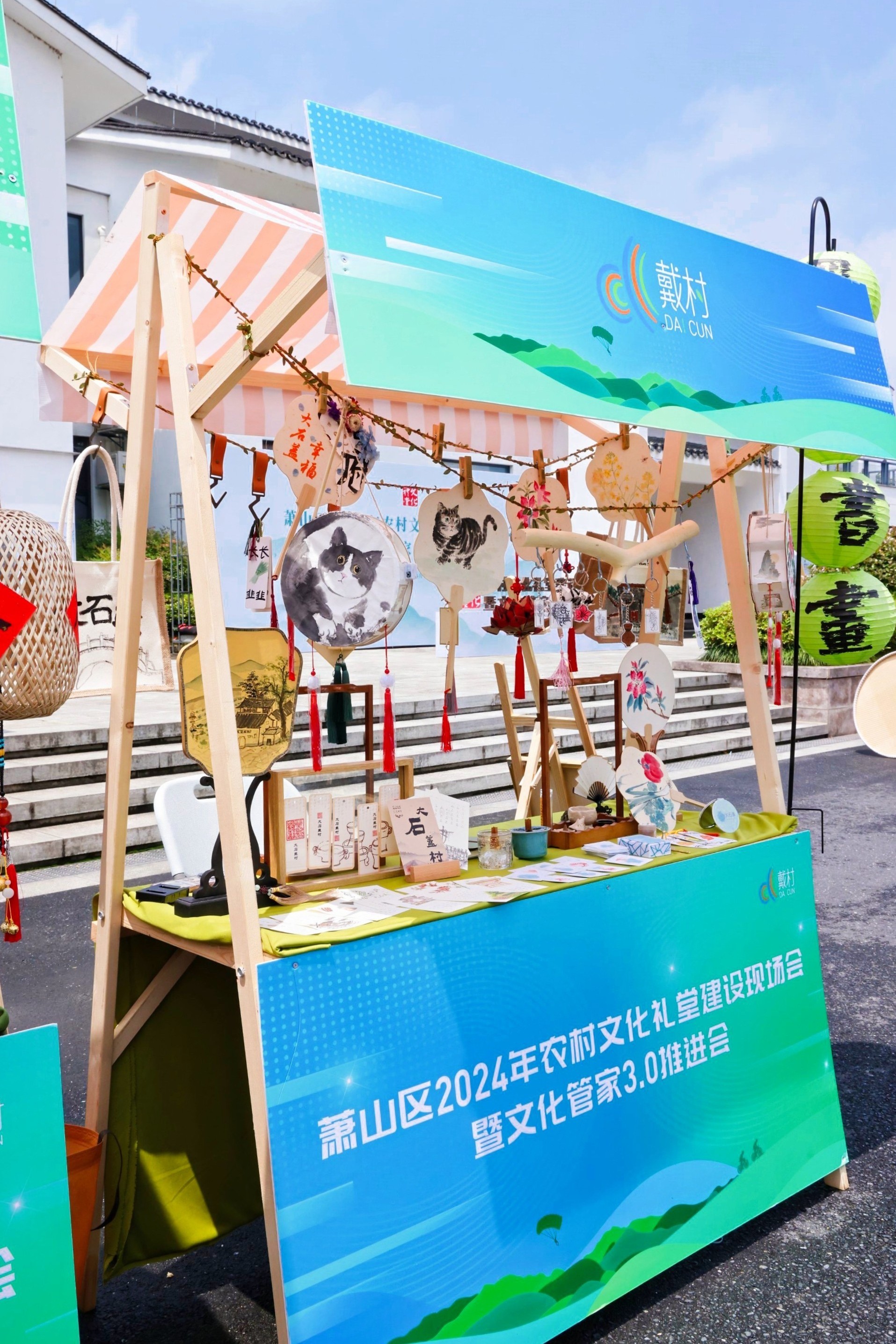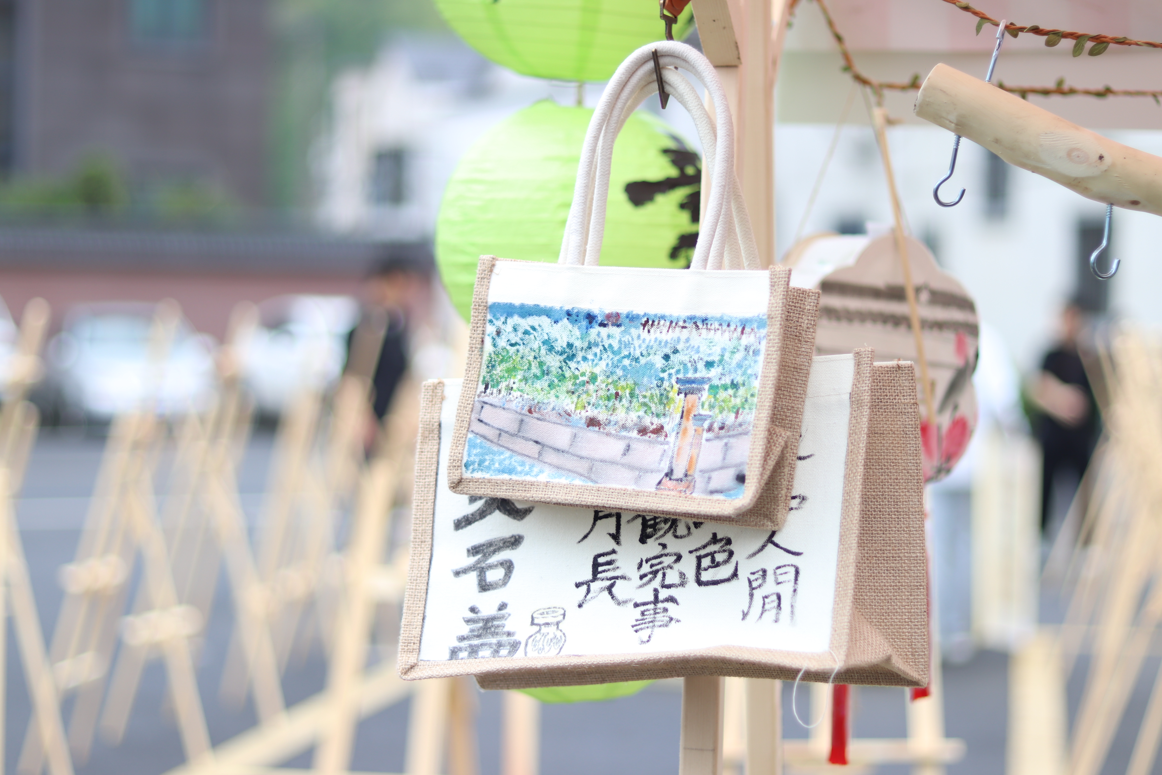 活动现场人头攒动,一个个摊位上的文创产品琳琅满目。中国传统书画跃身于灯笼、香薰蜡烛、书签、纸伞、纸扇、挂件之上,与创意产品完美结合,精致美观又充满文化气息,引得现场观众频频驻足,争相购买。大家在一件件扇面和书签中体悟融入生活中的艺术,从火漆印章和香薰蜡烛中感受传统文化的新魅力。值得一提的是,师生们还为戴村镇大石盖村开发了系列文创产品,也受到一致好评。