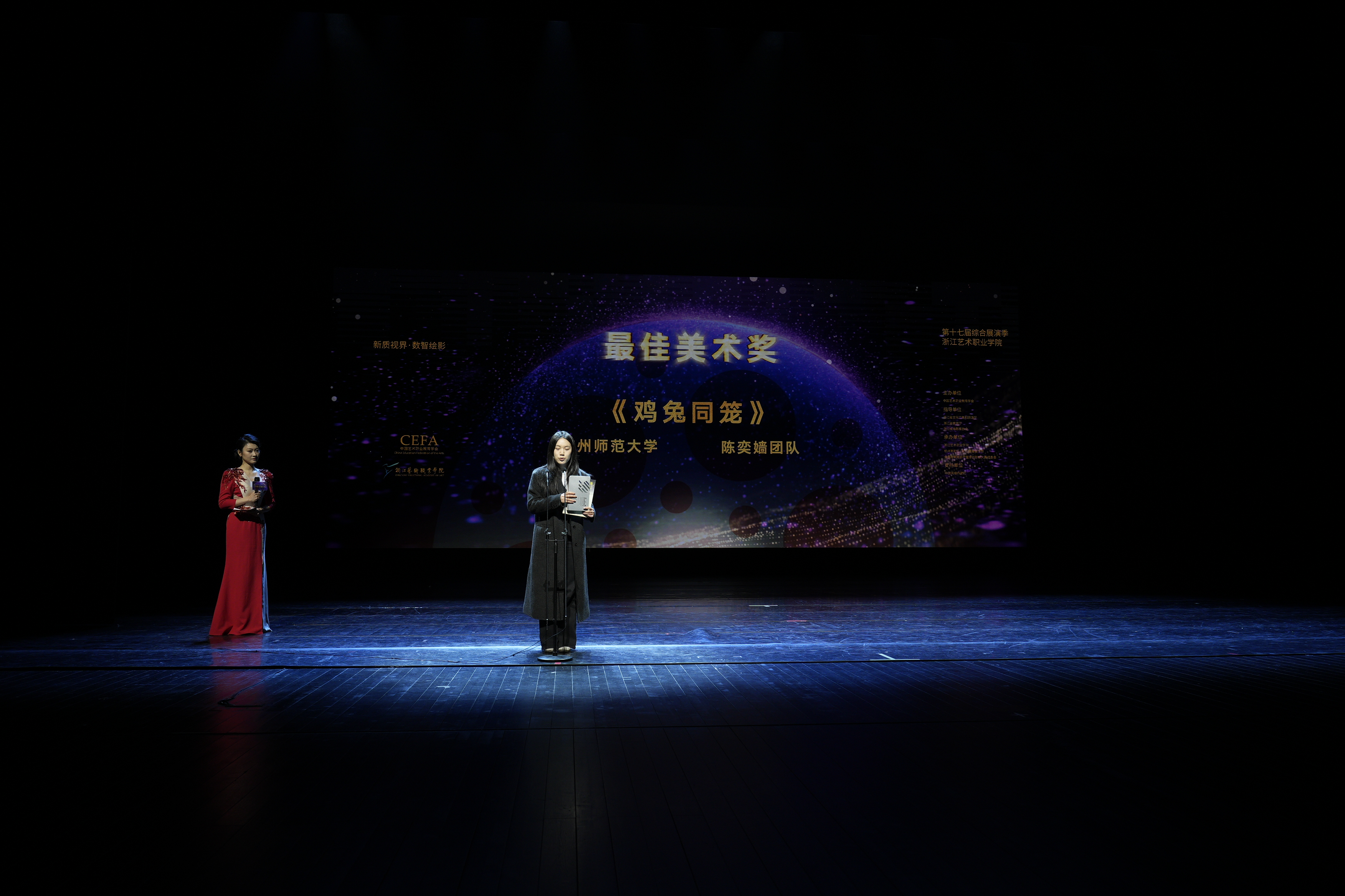 浙江省文化广电和旅游厅党组成员、副厅长吕伟刚,浙江省教育厅二级巡视员李建章,杭州市高新区党工委委员、滨江区委常委、宣传部部长翟慧清,高新区(滨江)纪委副书记、监委副主任侯百曙,高新区(滨江)宣传部常务副部长、新闻出版局局长、社科联主席、文联主席胡嘉欢,滨江区文化创业发展中心主任龚栩,高新区(滨江)社科联副主席、文联副主席程远娟,高新区(滨江)区白马湖生态创意城管委会党工委副书记、副主任王军,中央戏剧学院教授、博士生导师路海波,网易(杭州)网络有限公司党委书记、副总裁刘杰,浙江艺术职业学院党委书记薛亮、校长施俊天等出席闭幕式。