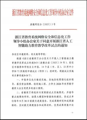 近日,浙江省教育系统网络安全和信息化工作领导小组办公室正式公布了浙江省人工智能助力教育教学改革试点名单,我校凭借“AI赋能下中高职一体化心理健康智慧服务平台建设”项目入选试点单位。