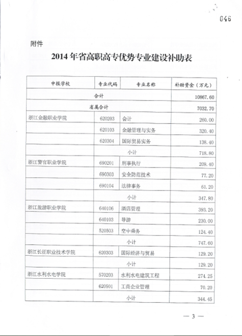 浙江省财政厅 浙江省教育厅关于发布2014年高职高专院校优势专业建设补助资金的通知