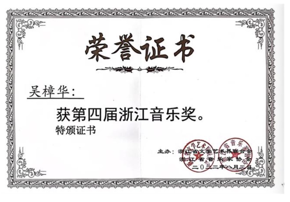 ▲吴樟华获第四届浙江音乐奖